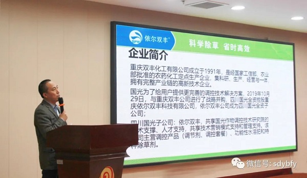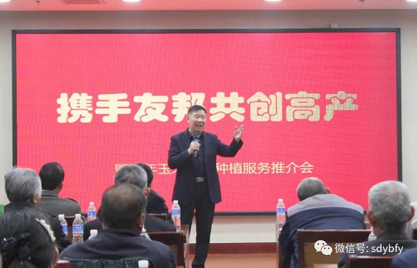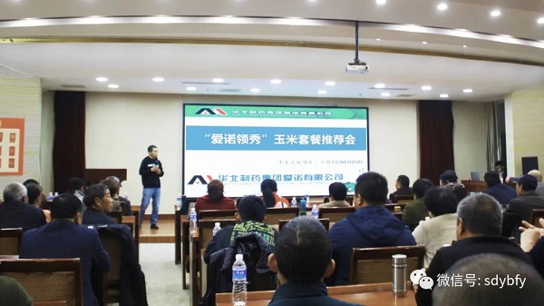 友邦肥业总经理刘洪林,友邦肥业营销副总经理、宁阳联合社经理马涛讲解友邦肥料,公布订货政策。会议邀请合作单位:国光依尔双丰山东省省区经理胡克伟、华北制药集团爱诺有限公司中东大区部长王晗就关联产品进行讲解。